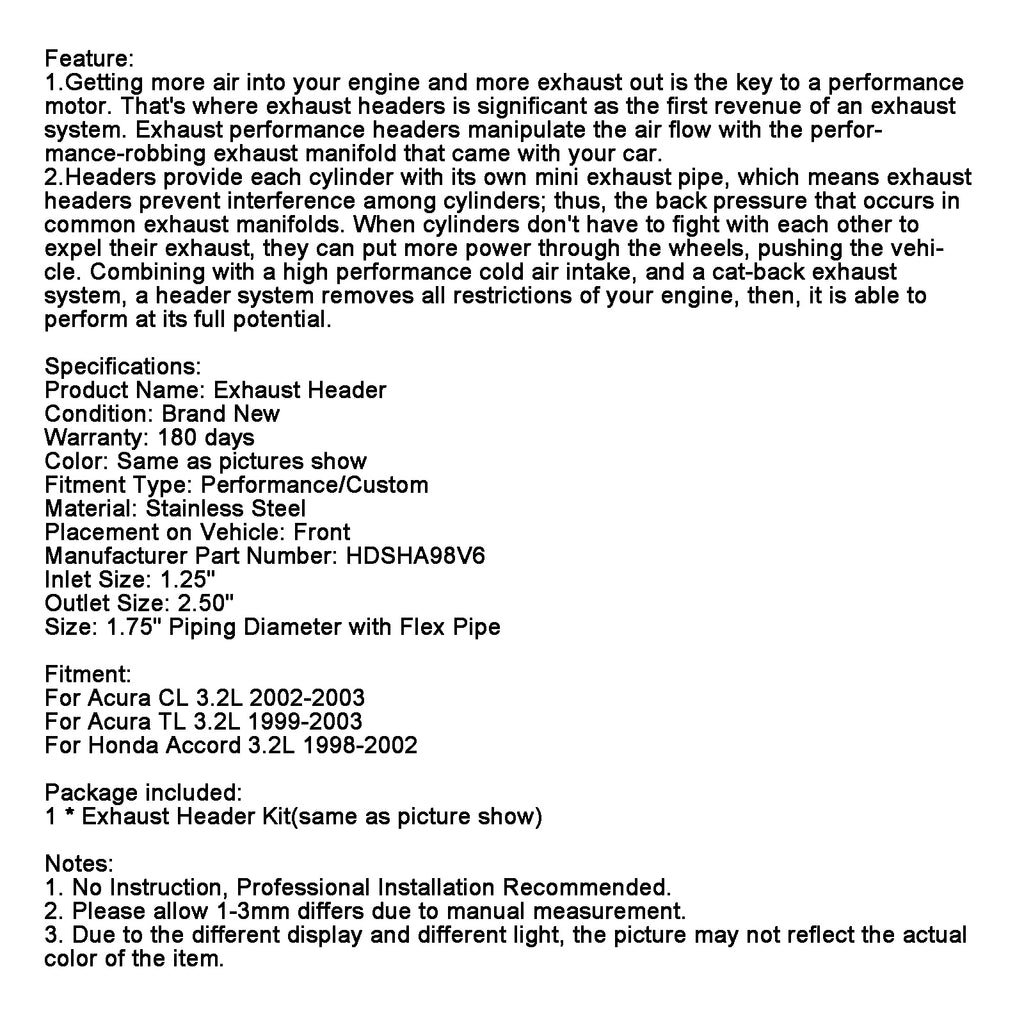 2.Headers provide each cylinder with its own mini exhaust pipe, which means exhaust headers prevent interference among cylinders; thus, the back pressure that occurs in common exhaust manifolds. When cylinders don't have to fight with each other to expel their exhaust, they can put more power through the wheels, pushing the vehicle. Combining with a high performance cold air intake, and a cat-back exhaust system, a header system removes all restrictions of your engine, then, it is able to perform at its full potential.