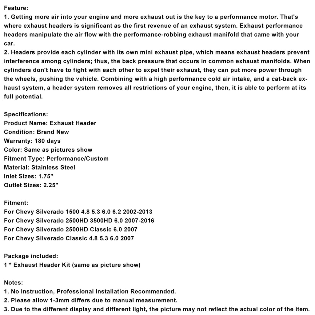 Exhaust Manifold Header Fit GMC Silverado 1500 2500 3500 4.8 5.3 6.0L 2002-2013