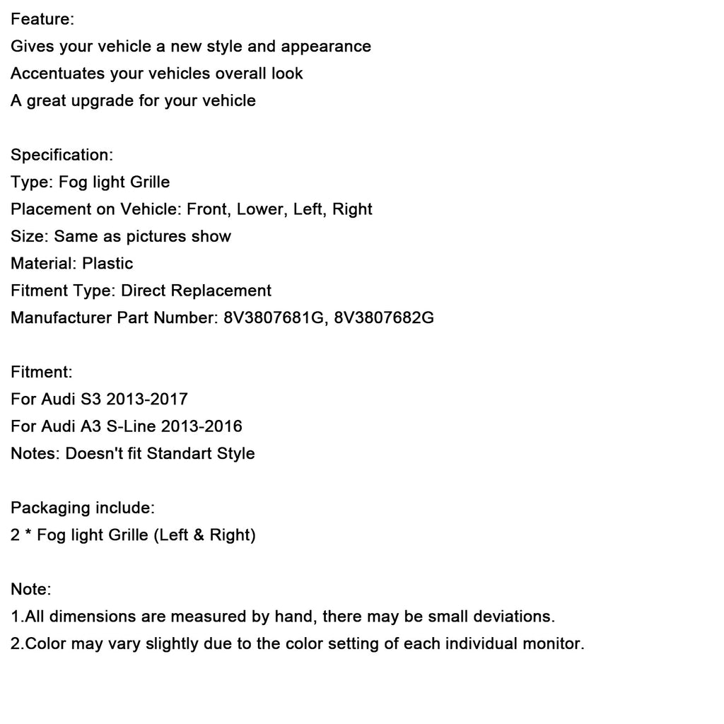 Front Lower Bumper Fog Light Cover Grille Fit AUDI A3 S3 S-Line 2013-2016