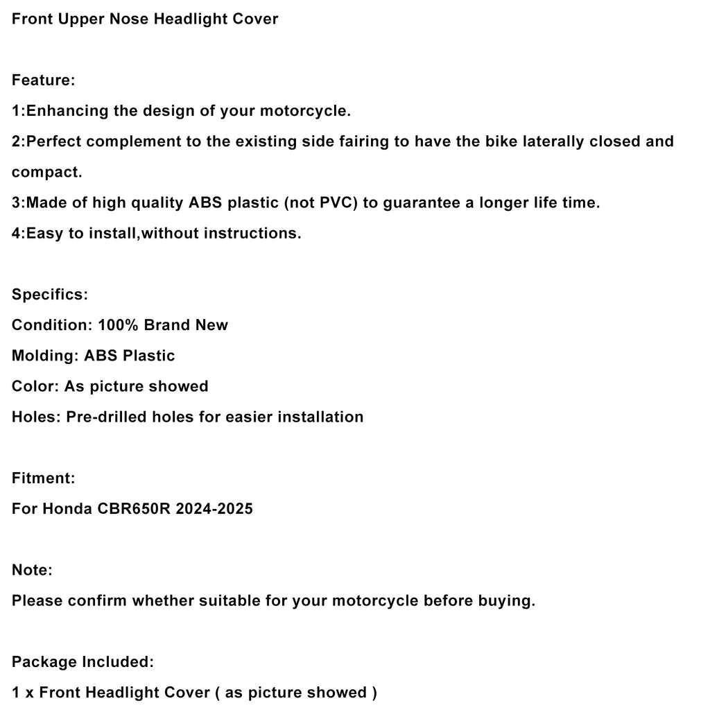 Front Upper Nose Headlight Cover Fit For Honda CBR650R 2024-2025
