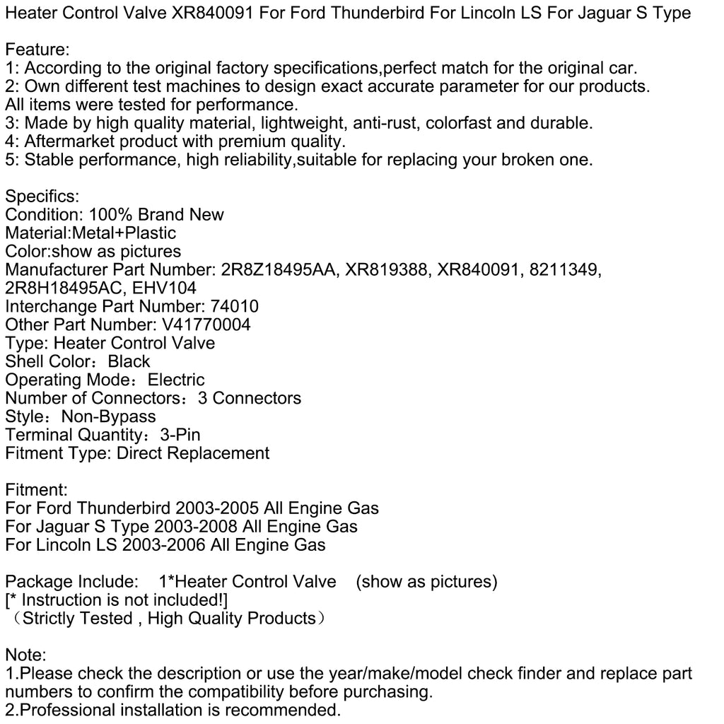 Heater Control Valve XR840091 For Ford Thunderbird For Lincoln LS For Jaguar S Type