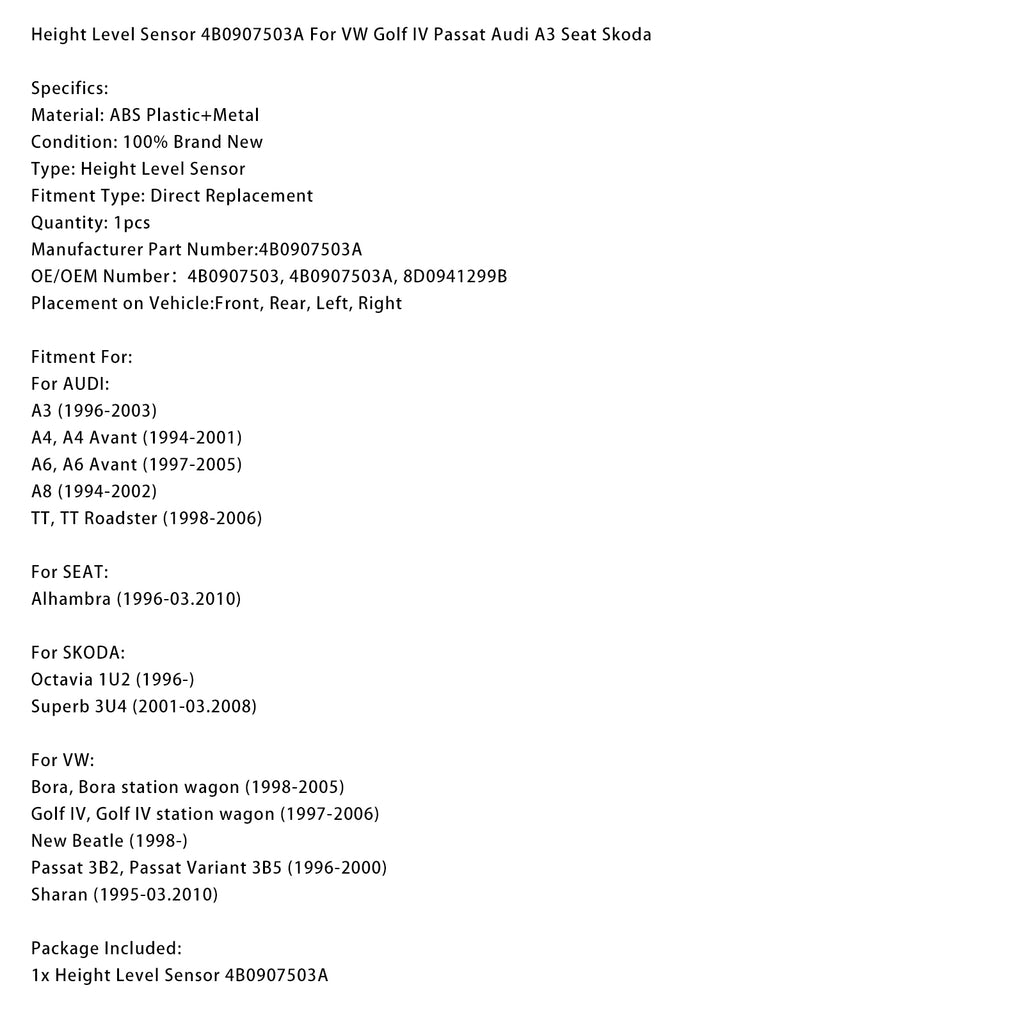 Height Level Sensor 4B0907503A For VW Golf IV Passat Audi A3 Seat Skoda