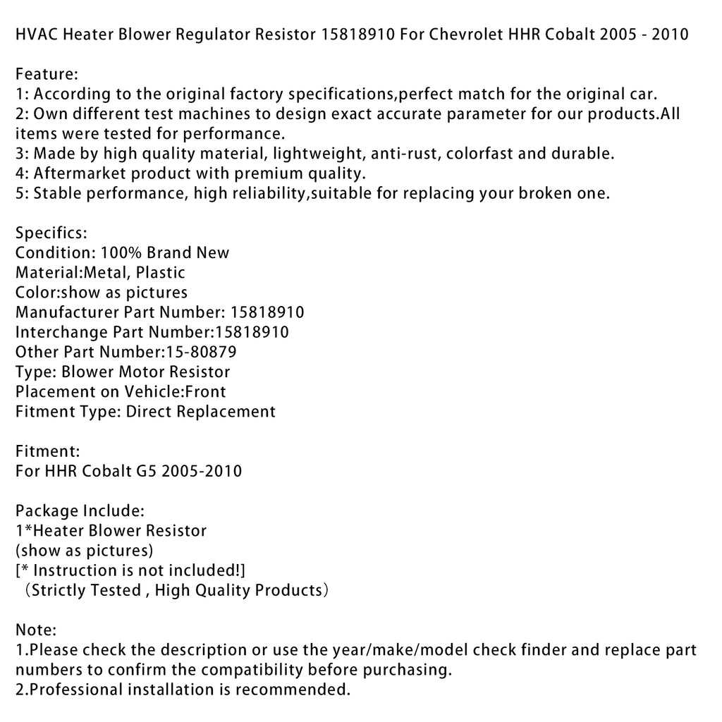 HVAC Heater Blower Regulator Resistor 15818910 For Chevrolet HHR Cobalt 2005-2010
