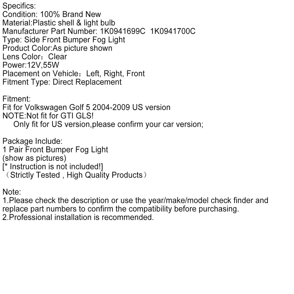 LH RH Pair Front Bumper Fog Light For Volkswagen Golf 5 2004-2009 US version
