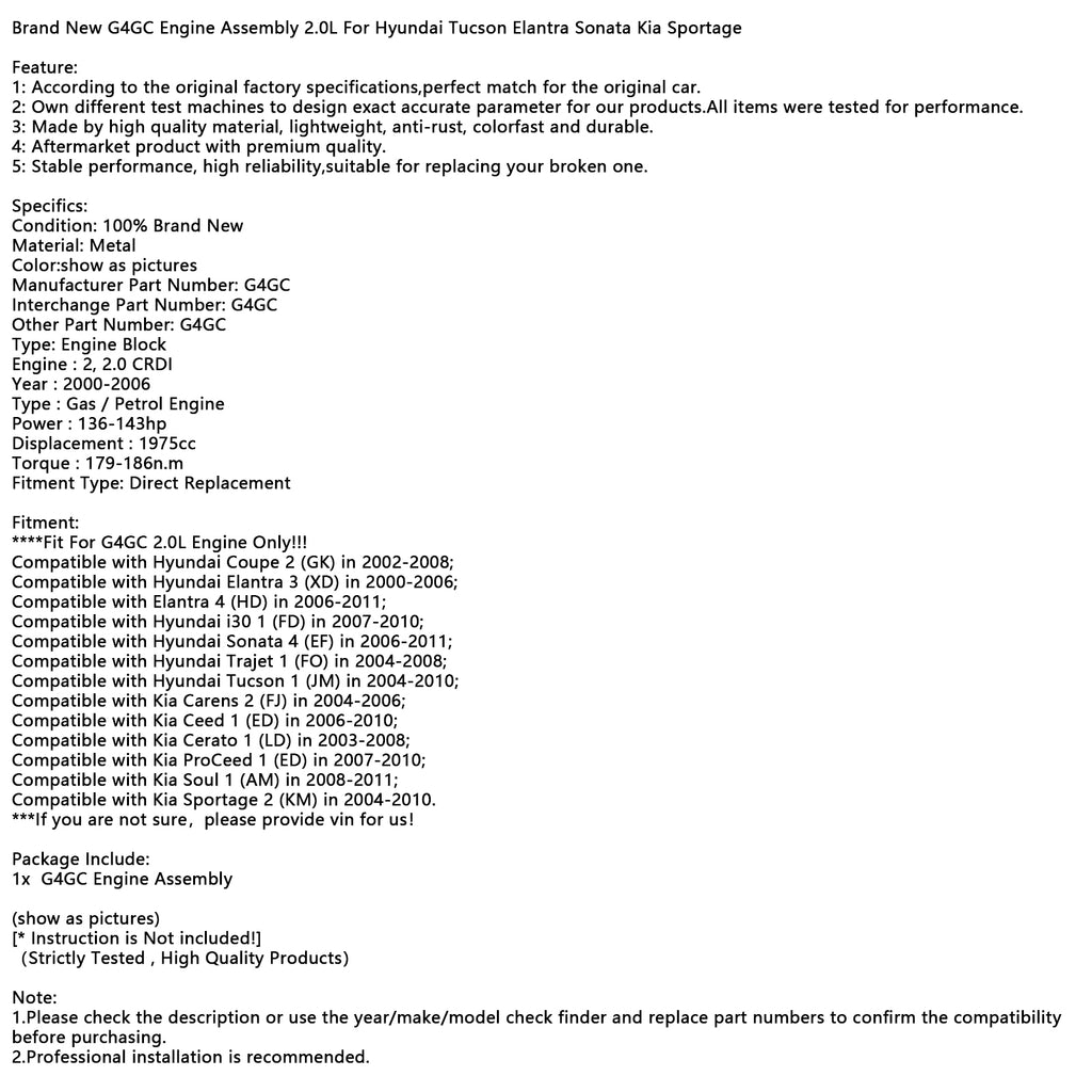 Brand New G4GC Engine Assembly 2.0L For Hyundai Tucson Elantra Sonata Kia Sportage
