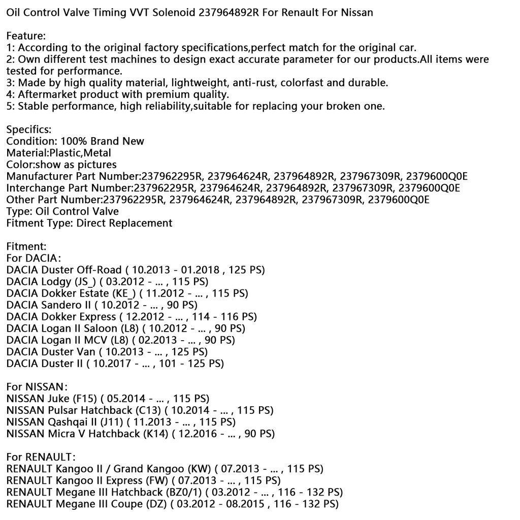 Oil Control Valve Timing VVT Solenoid 237964892R For Renault For Nissan