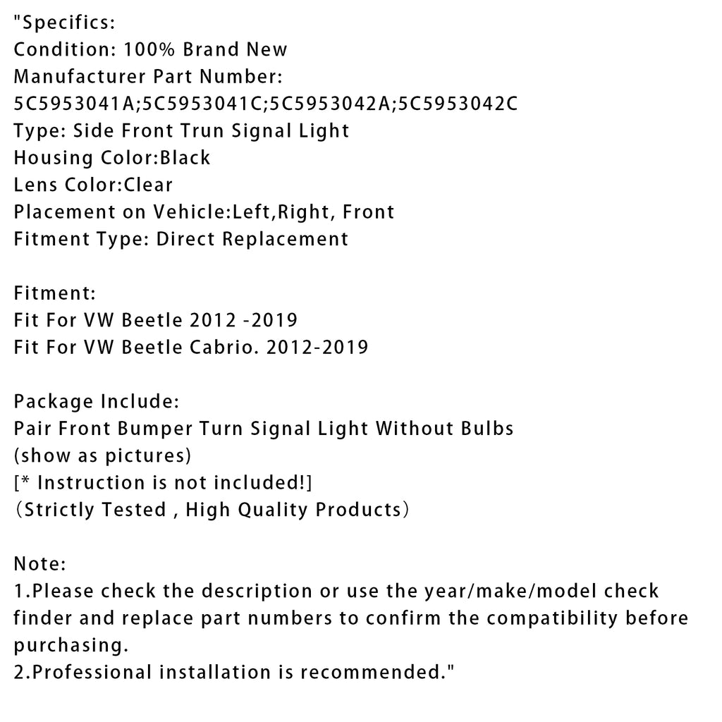 Pair Front Bumper Turn Signal Light Without Bulbs For VW Beetle 12-19 5C5953041A