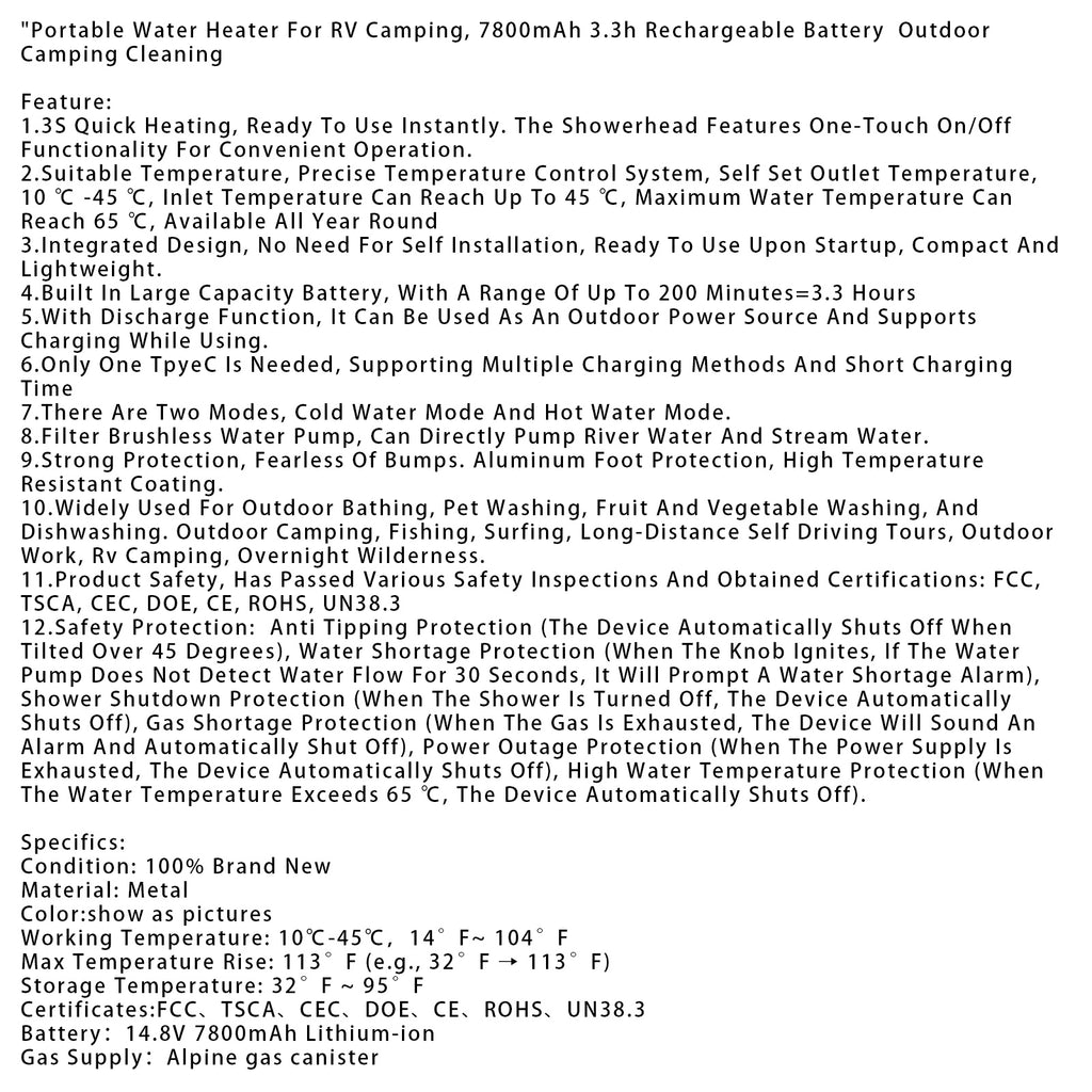 Portable Water Heater For RV Camping, 7800mAh 3.3h Rechargeable Battery Outdoor Camping Cleaning