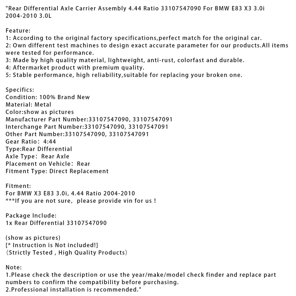 Rear Differential Axle Carrier Assembly 4.44 Ratio 33107547090 For BMW E83 X3 3.0i 2004-2010 3.0L