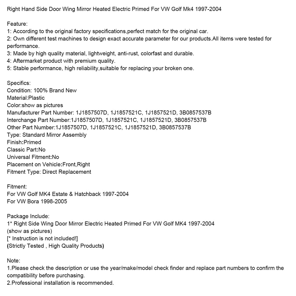 Right Hand Side Door Wing Mirror Heated Electric Primed For VW Golf Mk4 1997-2004