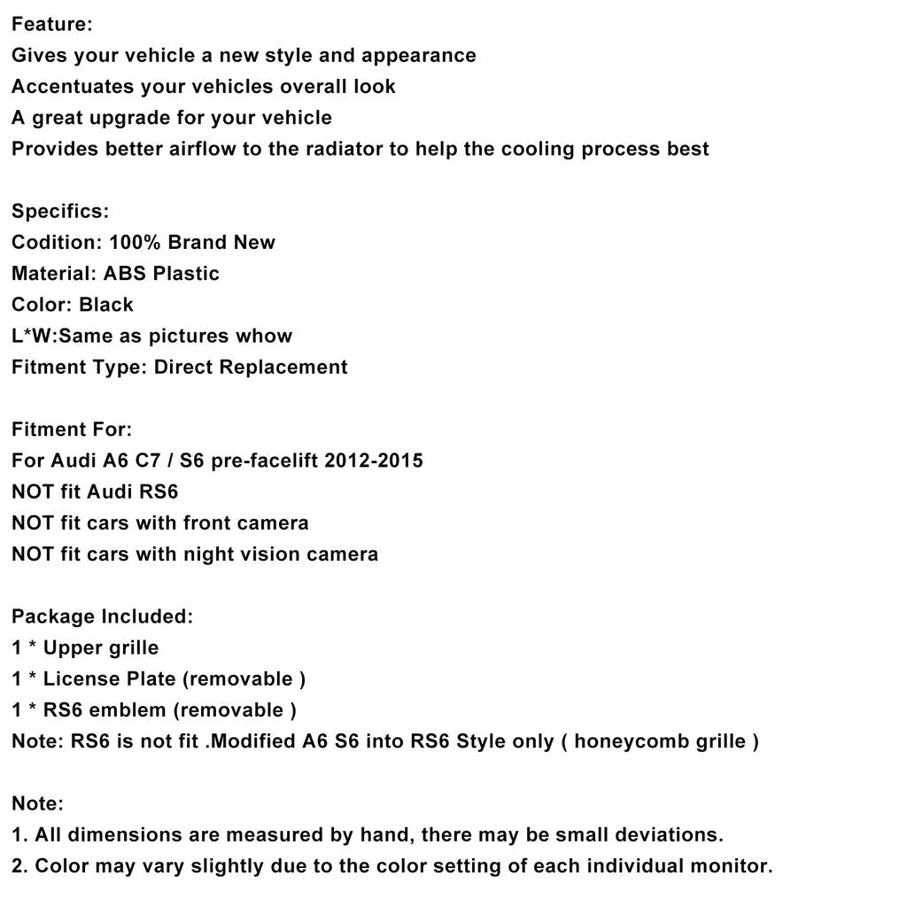 Note: RS6 is not fit .Modified A6 S6 into RS6 Style only ( honeycomb grille )