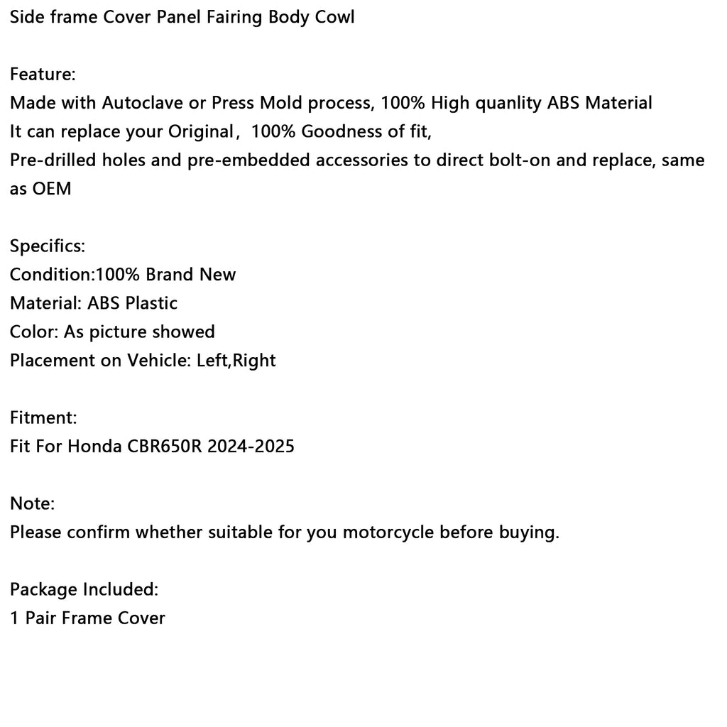 Side frame Cover Panel Fairing Body Cowl Fit For Honda CBR650R 2024-2025