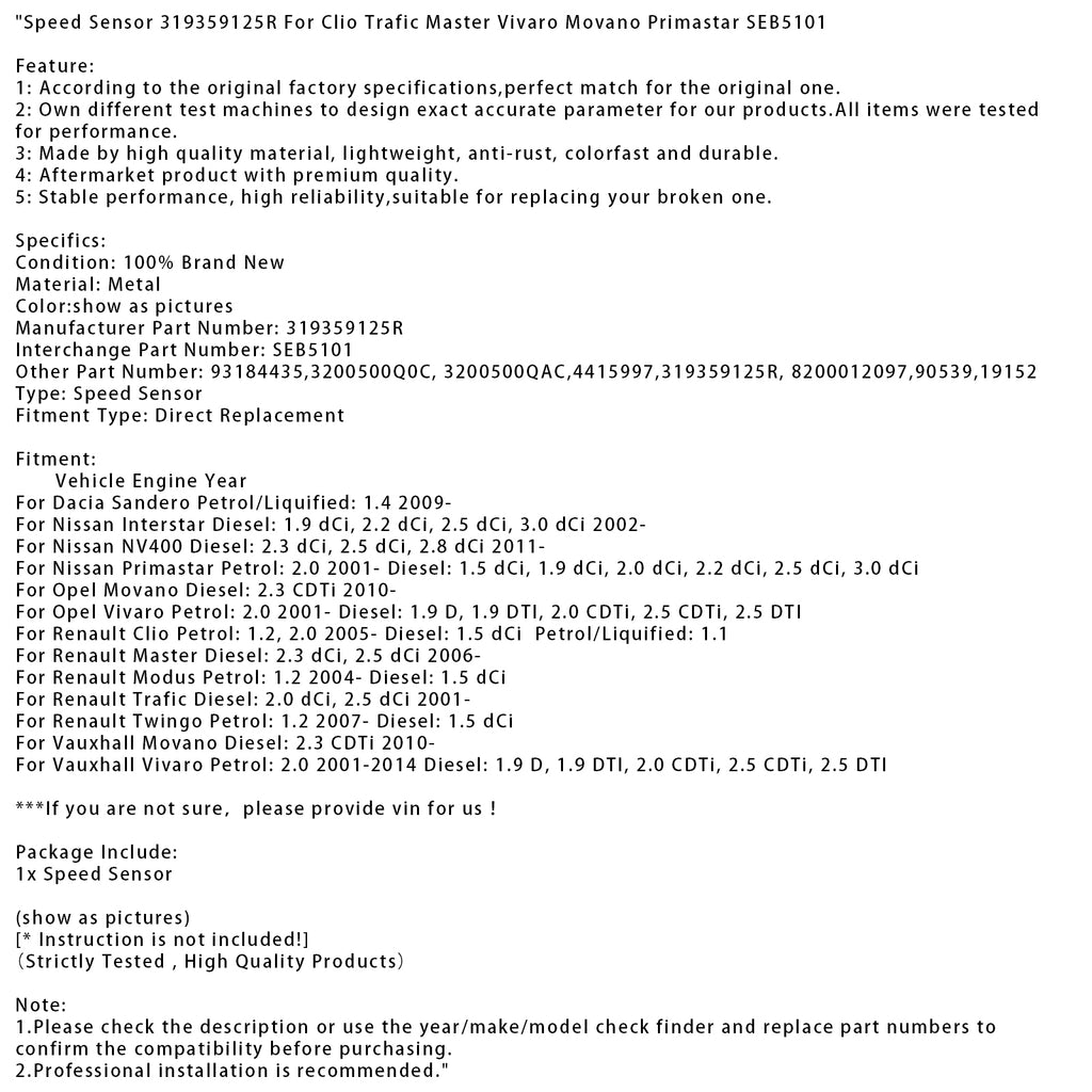 Speed Sensor 319359125R For Clio Trafic Master Vivaro Movano Primastar SEB5101
