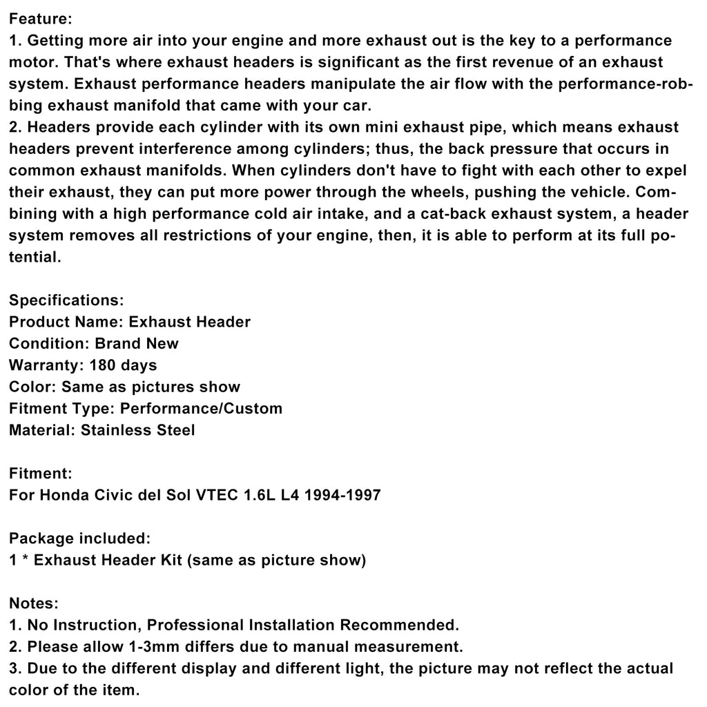 Stainless Exhaust Manifold Header Fit Honda Civic Del Sol 1.6L 4-1 1994-1997
