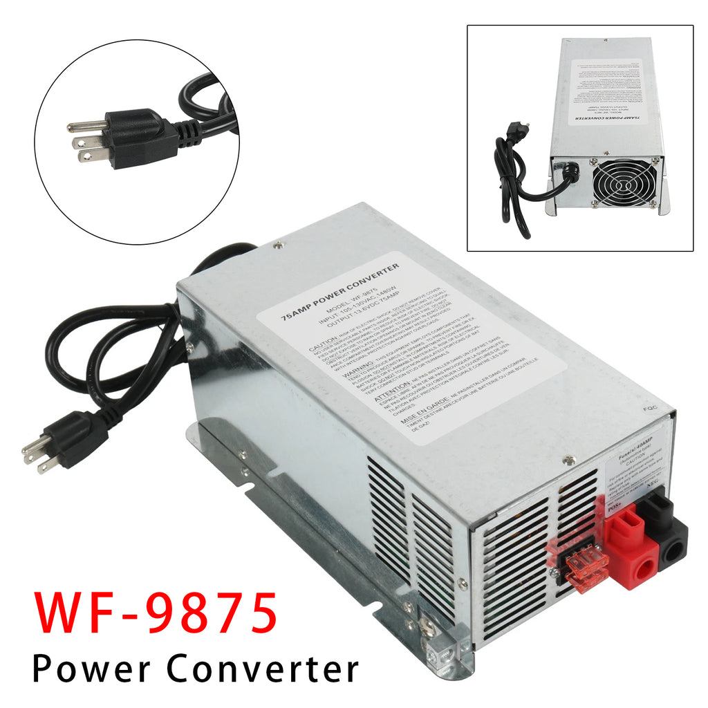 1.The versatility of the WF-9800 series converters is widely used in various recreational vehicles such as RV, trailers and campers, ideal for powering a variety of electronic devices and appliances. The WF-9875 model provides 75 Amps of clean, reliable DC power while providing a convenient, cheaper, long-term option that eliminates the hassle of replacing the entire unit.