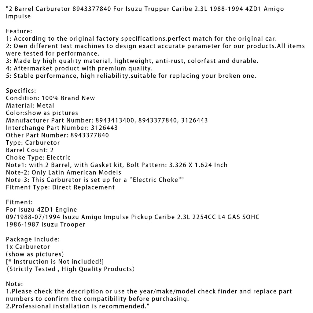 2 Barrel Carburetor 8943377840 For Isuzu Trupper Caribe 2.3L 1988-1994 4ZD1 Amigo Impulse