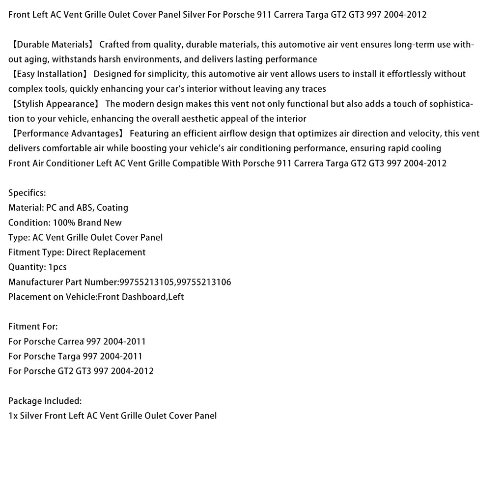 Front Left AC Vent Grille Oulet Cover Panel Silver Fit For Porsche 911 Carrera Targa GT2 GT3 997 2004-2012