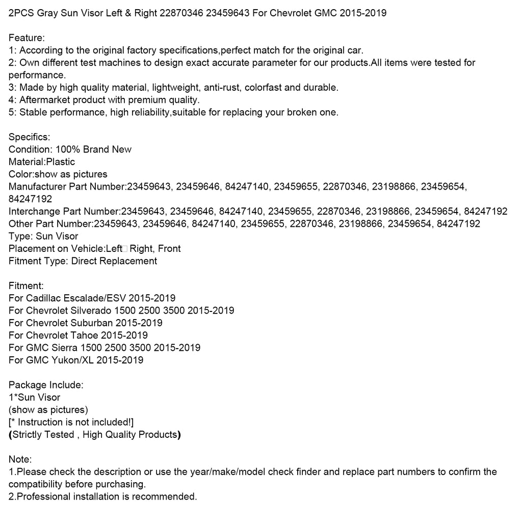 2 peças de para-sol cinza esquerdo & Direita 22870346 23459643 Para Chevrolet GMC 2015-2019