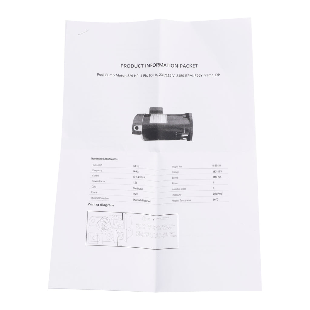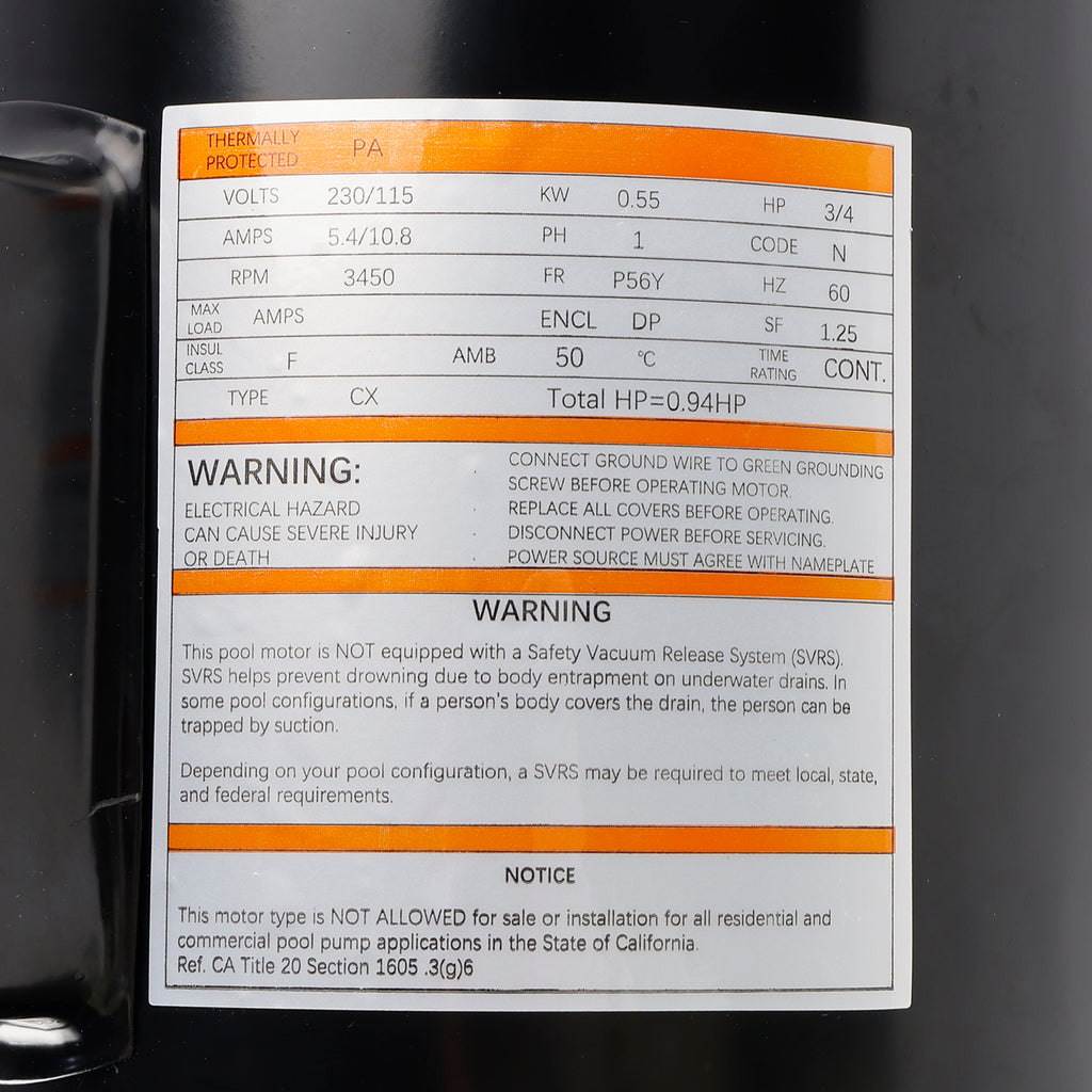 Para motor de bomba de piscina de velocidade única B2852 Up-Rate 3/4 HP 3450 RPM