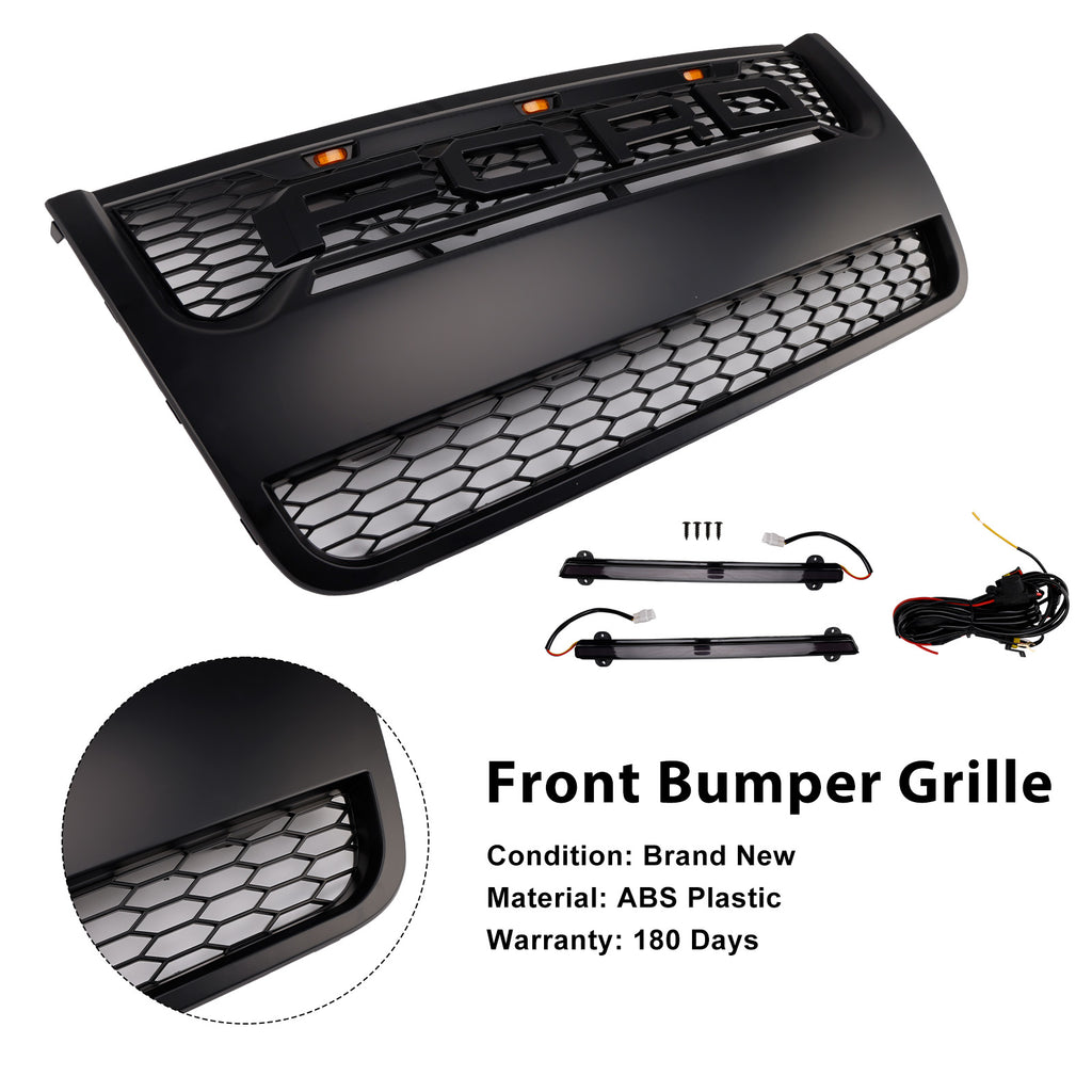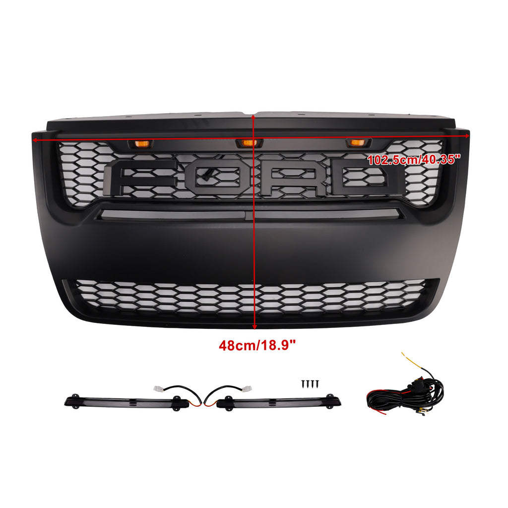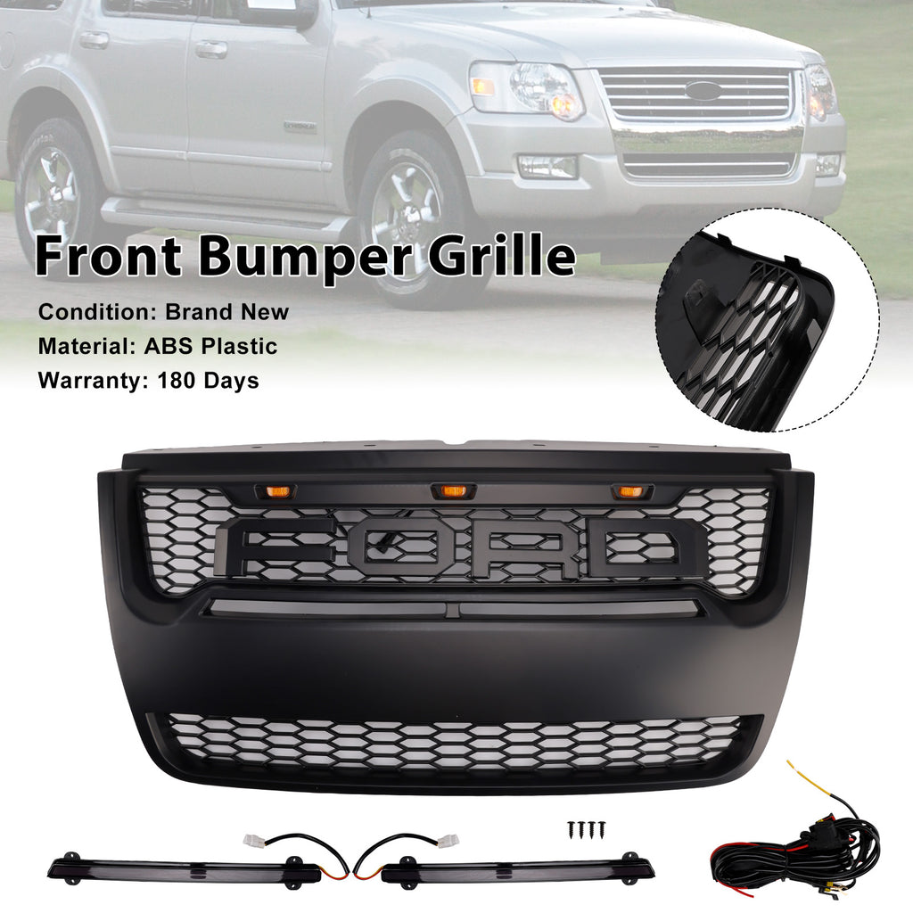 Black Front Upper Bumper Grill Grille Fit For Ford Explorer 2006-2010 With Light