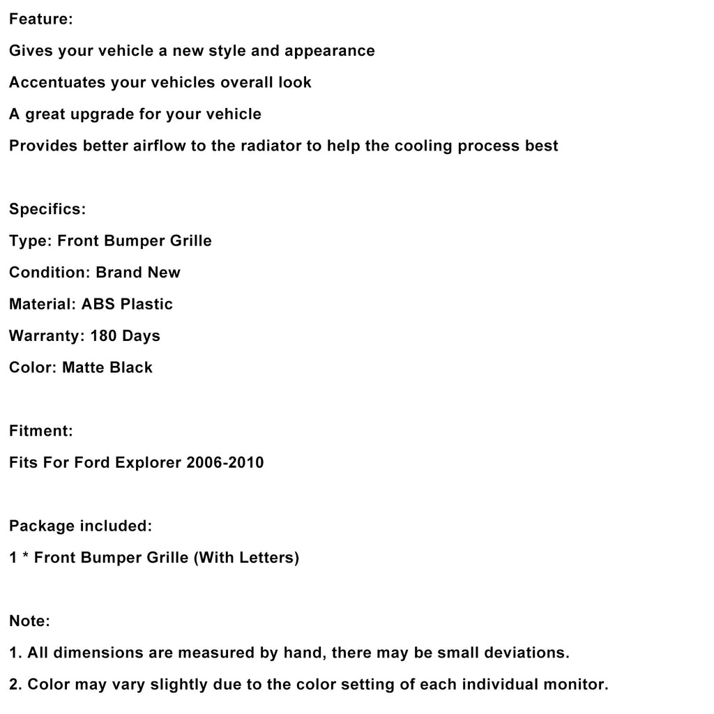 2006-2010 Ford Explorer With Light Black Front Upper Bumper Grill Grille