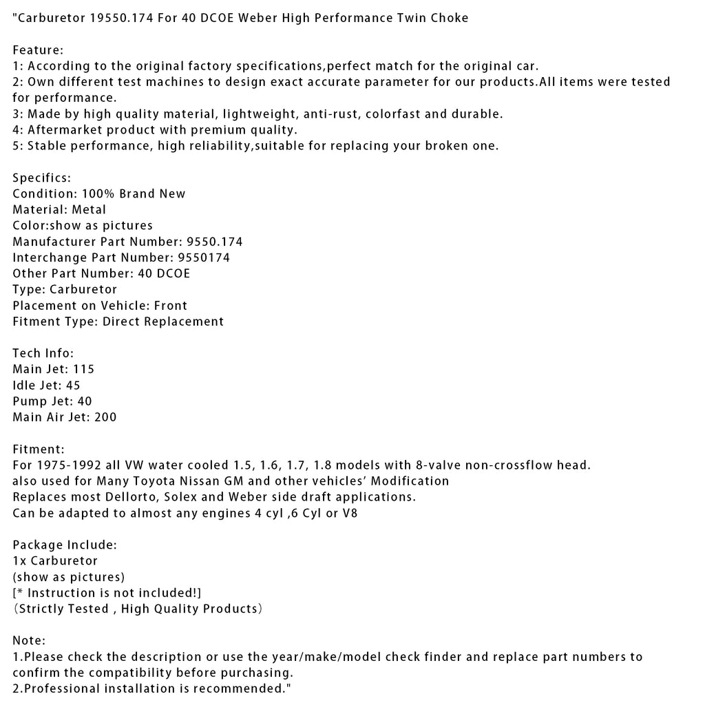 Carburador 19550.174 para 40 DCOE Weber High Performance Twin Choke