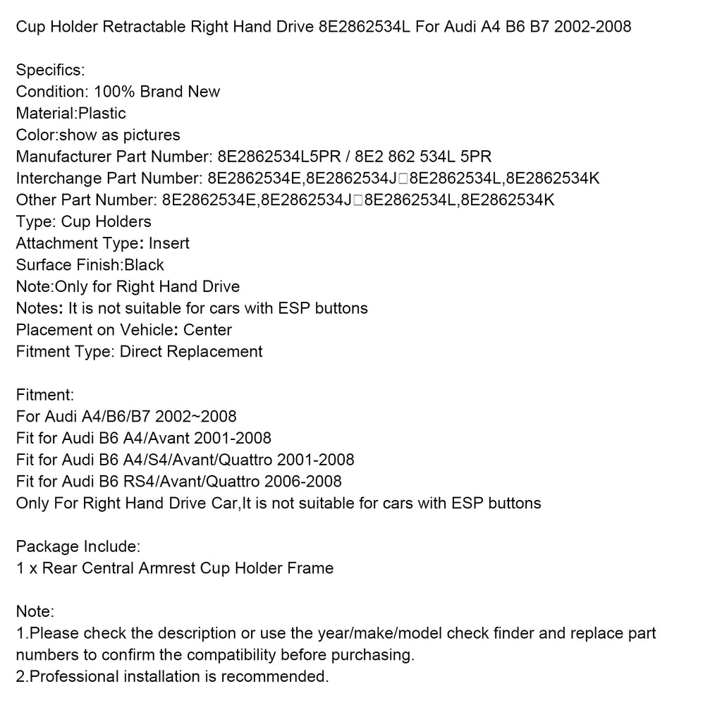 Porta-copos retrátil com volante à direita 8E2862534L para Audi A4 B6 B7 2002-2008