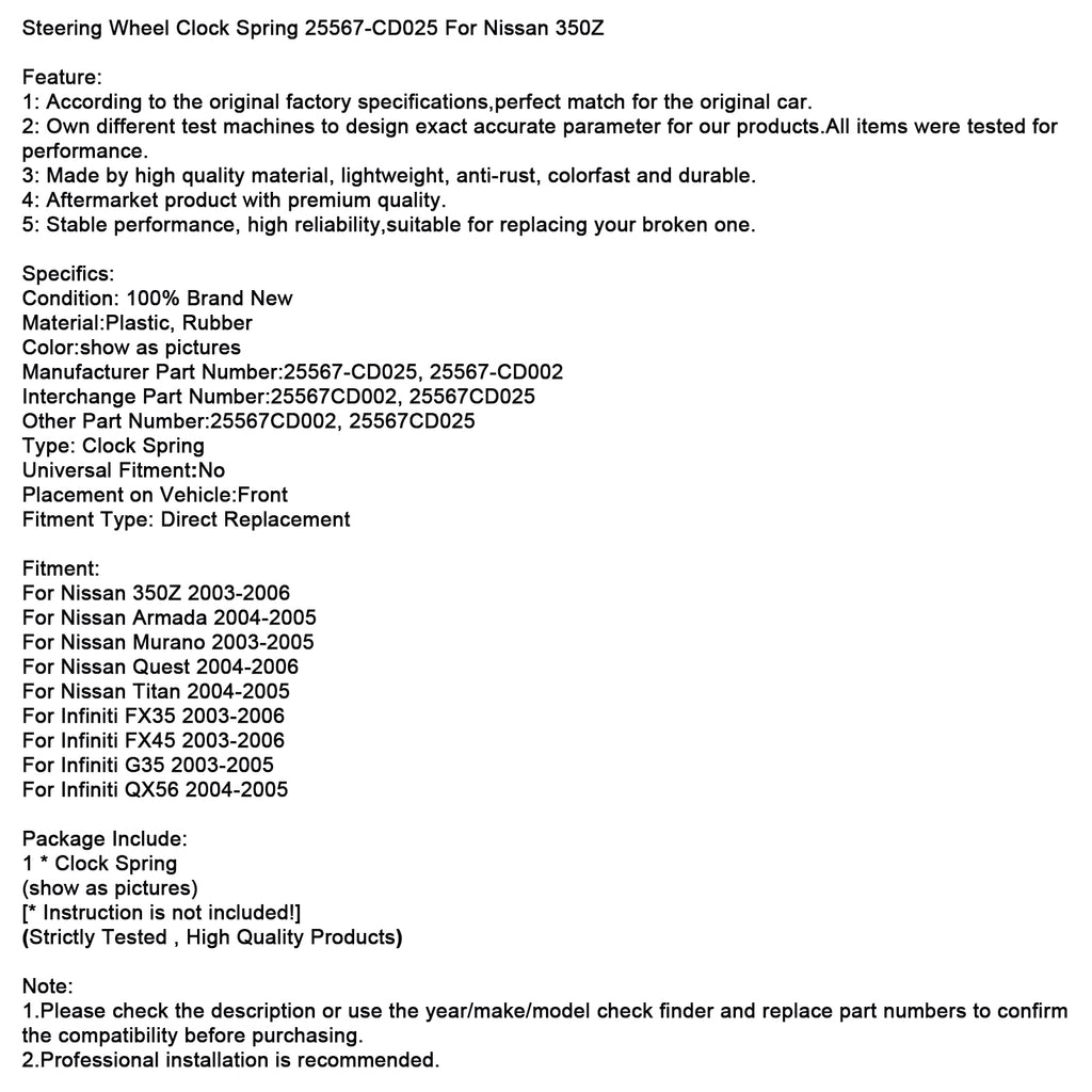 Mola do relógio do volante 25567-CD025 para Nissan 350Z