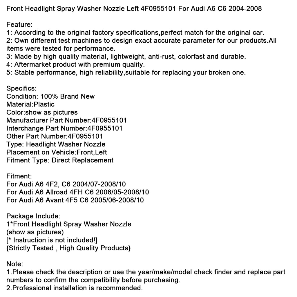 Front Headlight Spray Washer Nozzle Left 4F0955101 For Audi A6 C6 2004-2008