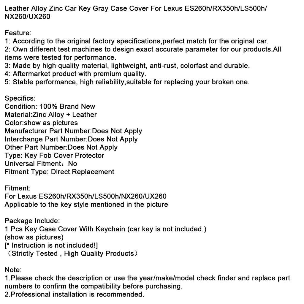 Leather Alloy Zinc Car Key Gray Case Cover For Lexus ES260h/RX350h/LS500h/NX260/UX260
