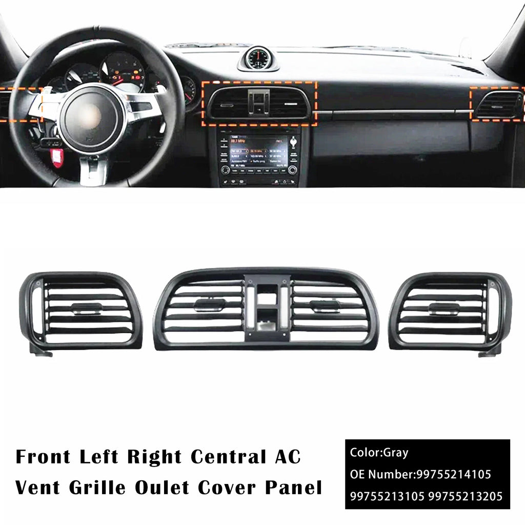 Left Right Central AC Vent Cover Gray For Porsche 911 Carrera Targa 2004-2012 99755214105 99755213105 99755213205
