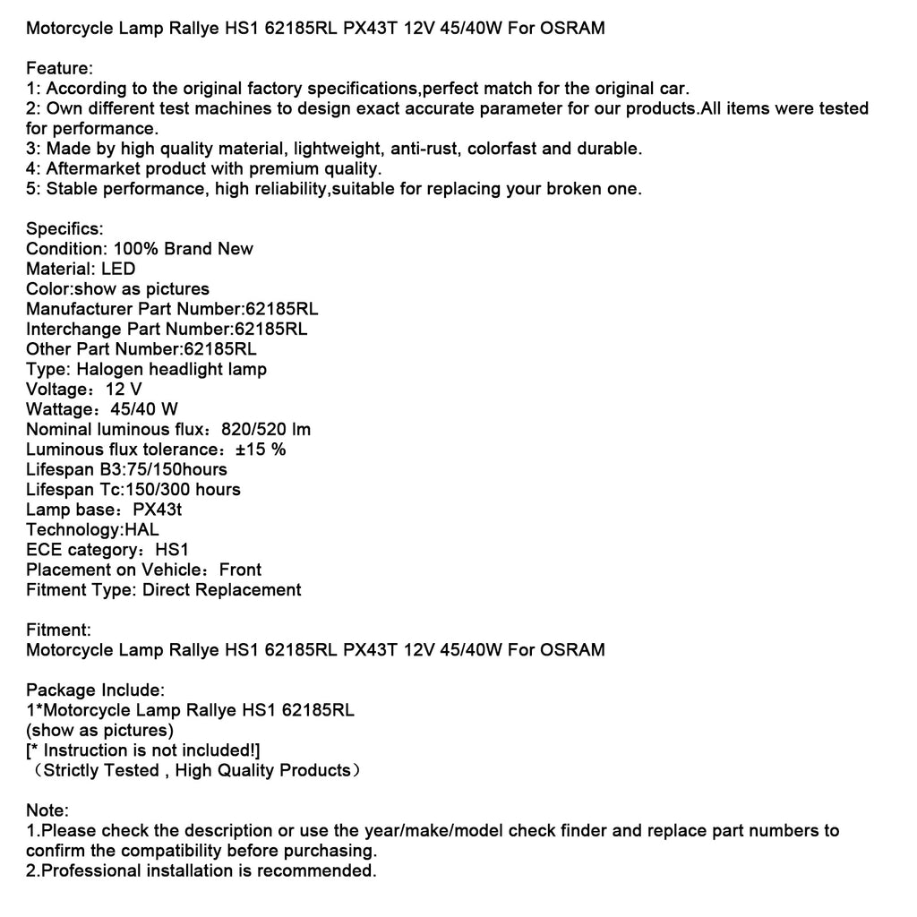 Lâmpada para motocicleta Rallye HS1 62185RL PX43T 12V 45/40W para OSRAM