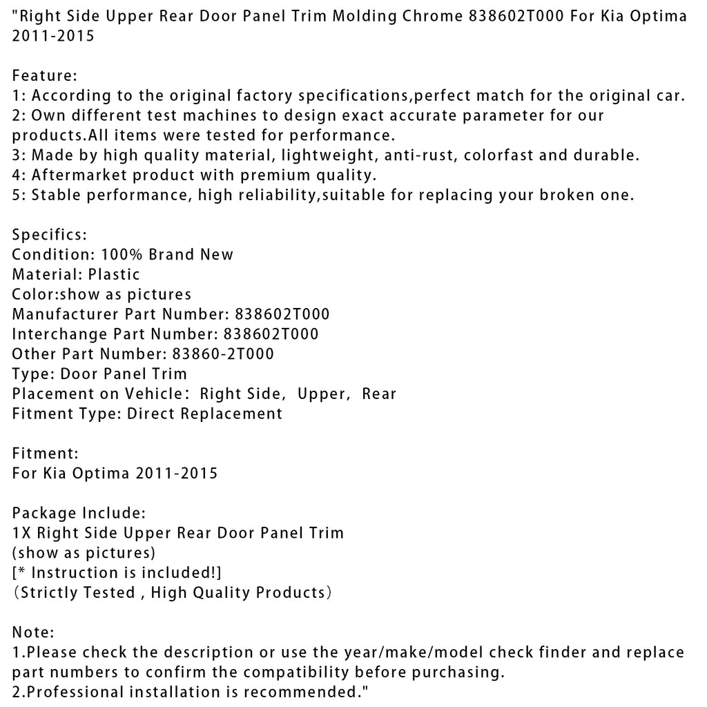 Moldura do painel da porta traseira superior direita cromada 838602T000 para Kia Optima 2011-2015