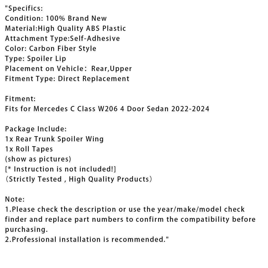Aerofólio traseiro com aparência de fibra de carbono para Benz W206 Estilo C63S 2022-2024