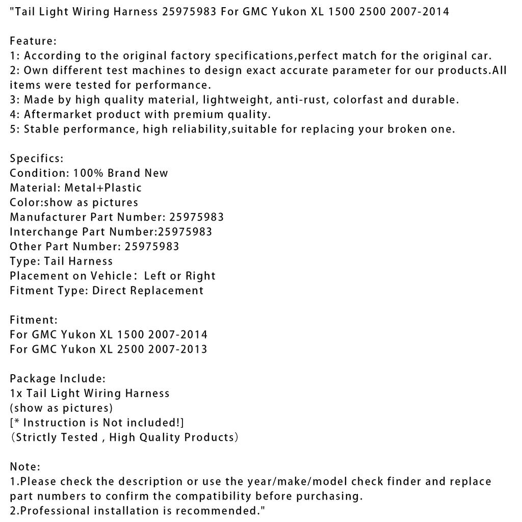 Tail Light Wiring Harness 25975983 For GMC Yukon XL 1500 2500 2007-2014