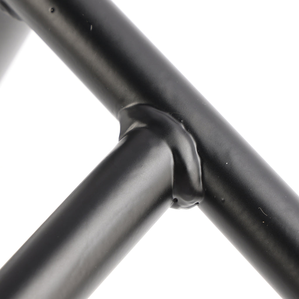 Nosso sistema de bagageiro resistente e com suporte cruzado atua como um subquadro adicional, fortalecendo a parte traseira da bicicleta e agindo como uma barra de proteção traseira.