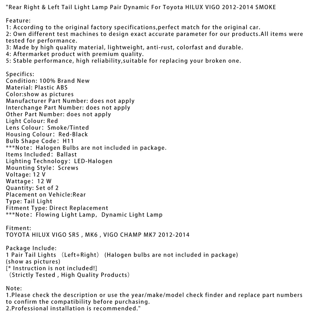 Traseira direita &Par de lâmpadas de luz traseira esquerda dinâmica para Toyota HILUX VIGO 2012-2014 SMOKE