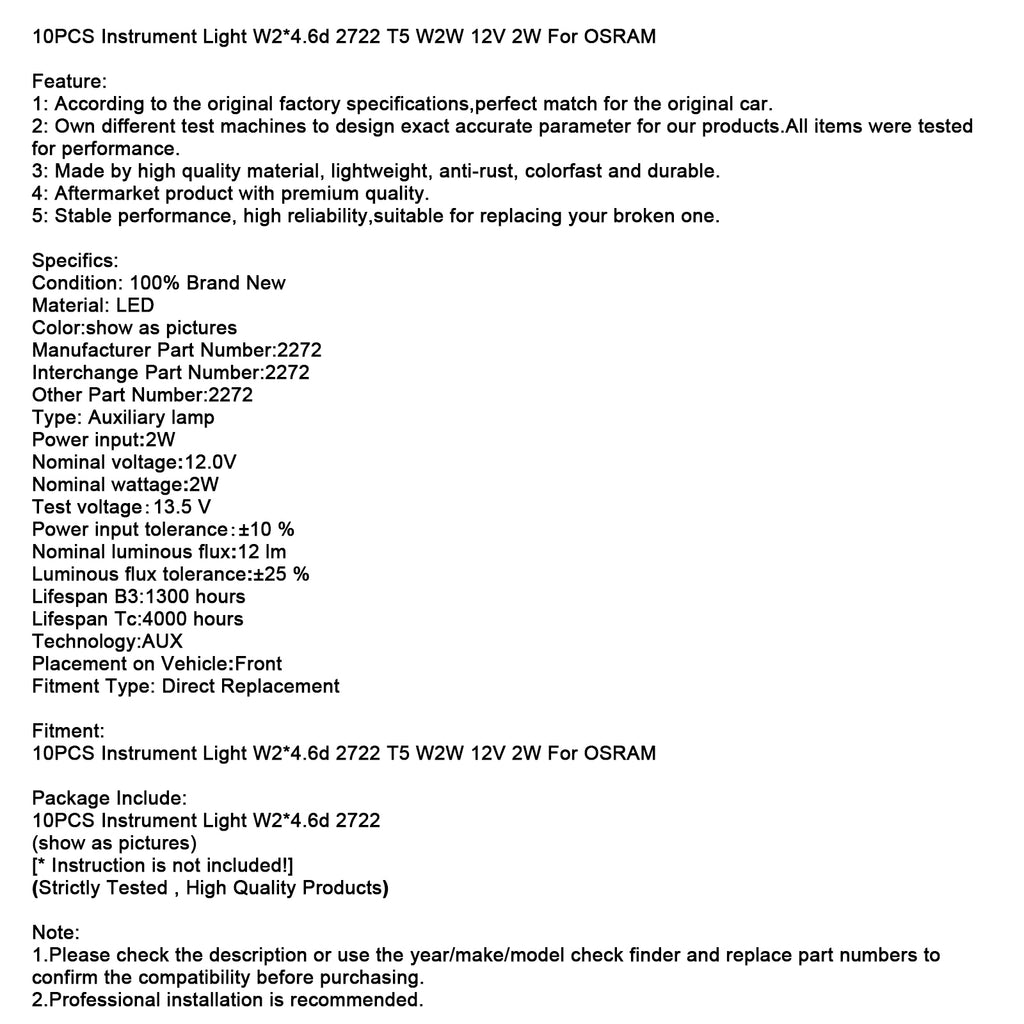 10 ks prístrojových svetiel W2*4,6 dňa 2722 T5 W2W 12V 2W pre OSRAM