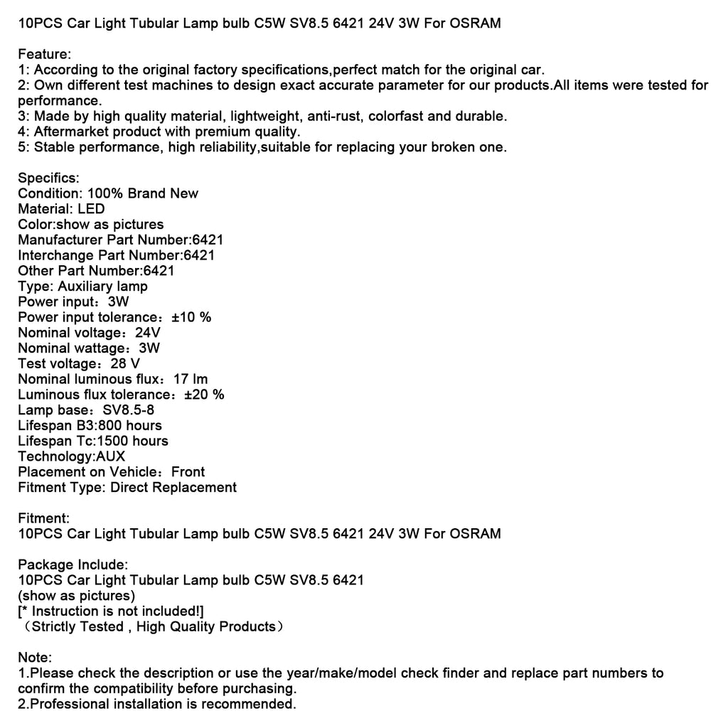 10 ks žiarovky do auta C5W SV8.5 6421 24V 3W pre OSRAM