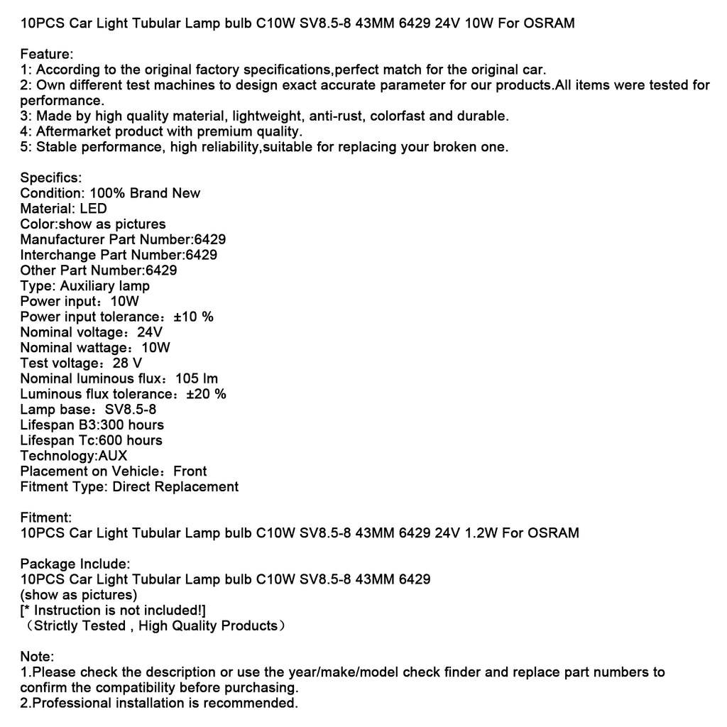 10 ks žiarovky do auta C10W SV8.5-8 43MM 6429 24V 1.2W pre OSRAM