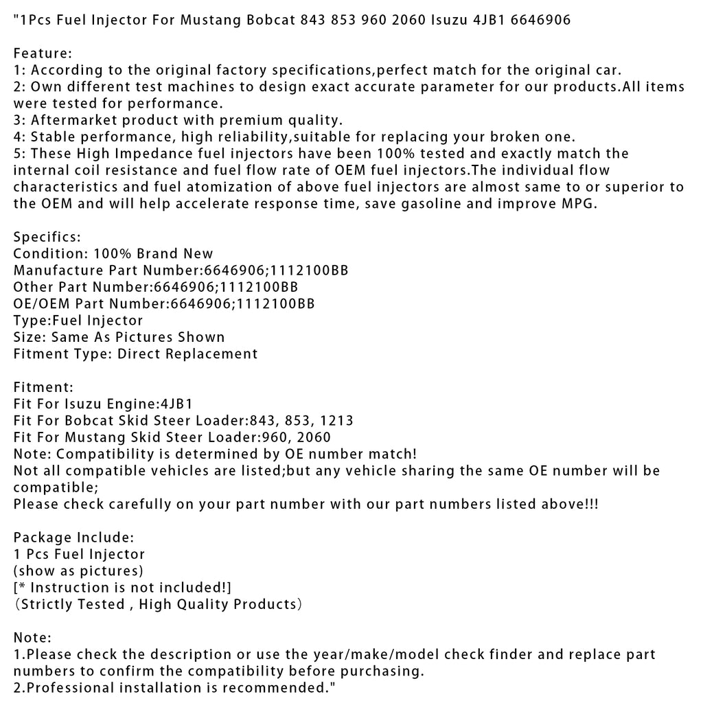 1Pcs Fuel Injector For Mustang Bobcat 843 853 960 2060 Isuzu 4JB1 6646906