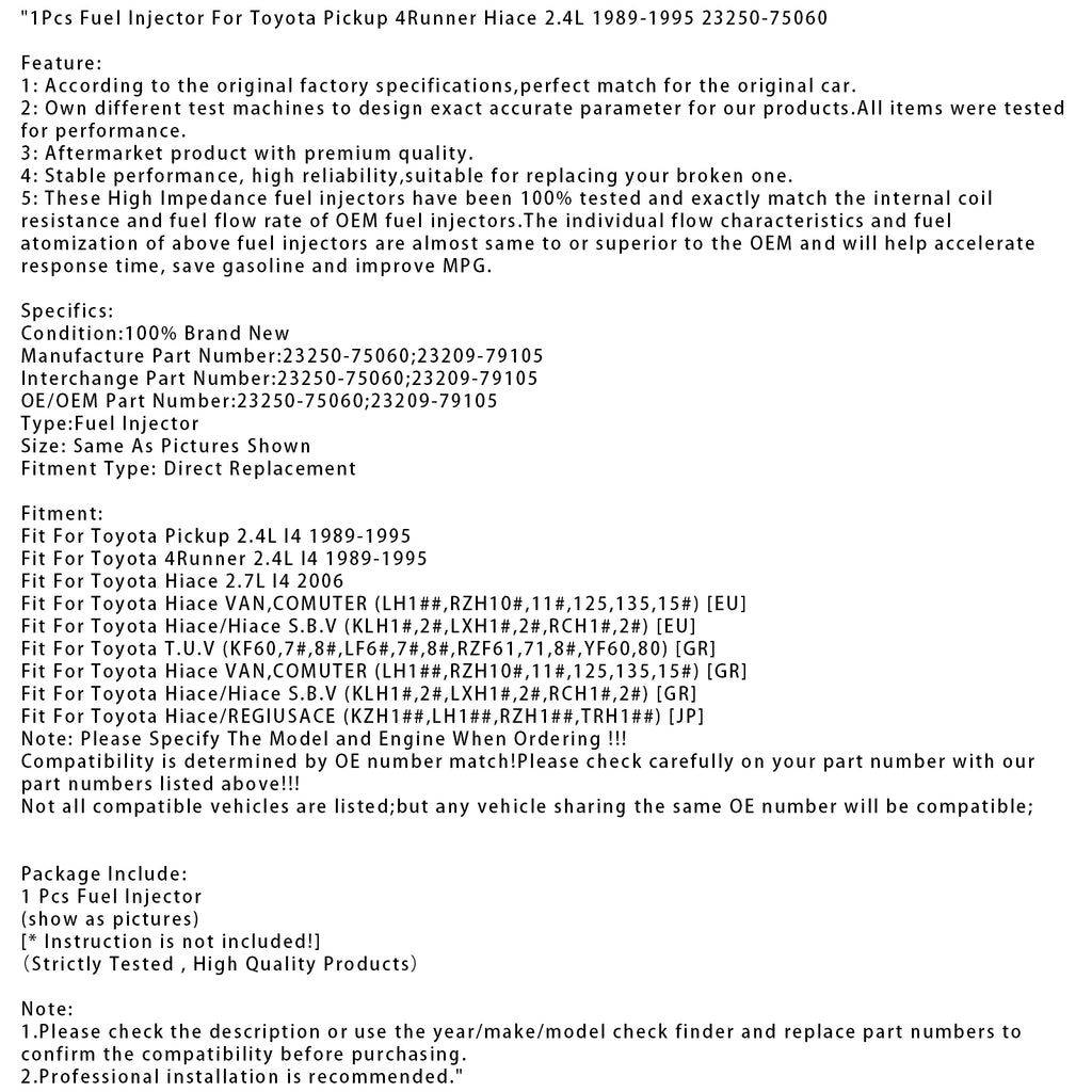 1Pcs Fuel Injector For Toyota Pickup 4Runner Hiace 2.4L 1989-1995 23250-75060