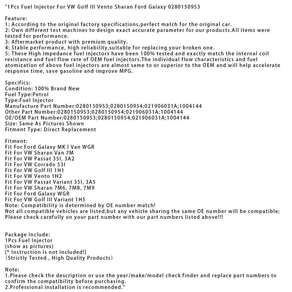 1Pcs Fuel Injector For VW Golf III Vento Sharan Ford Galaxy 0280150953