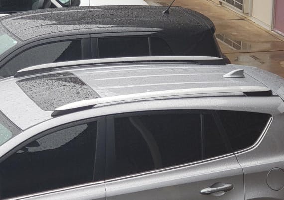 Hliníkový strieborný strešný nosič, bočné lišty, vhodné pre vozidlá Toyota RAV4, rok výroby 2014-2019