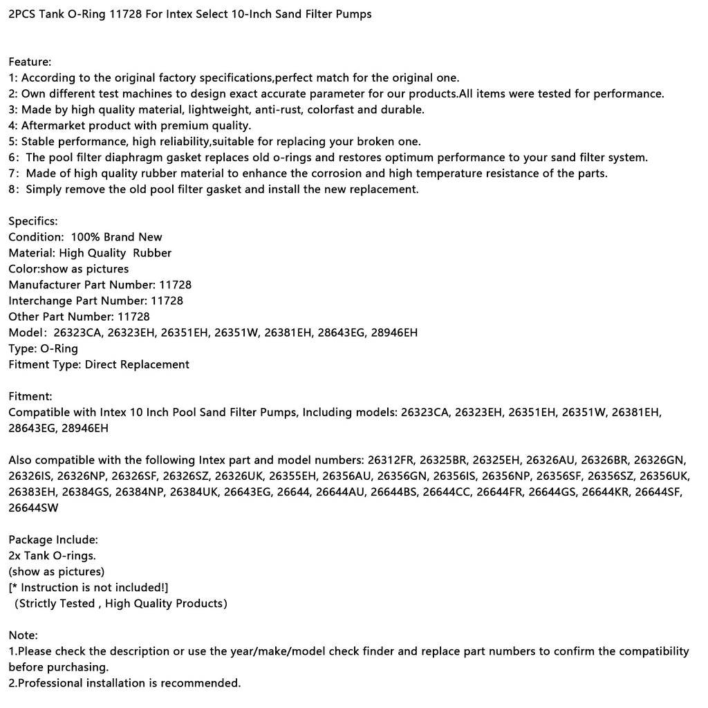 2 ks O-krúžkov na nádrž 11728 pre Intex Select 10-palcové pieskové filtračné čerpadlá
