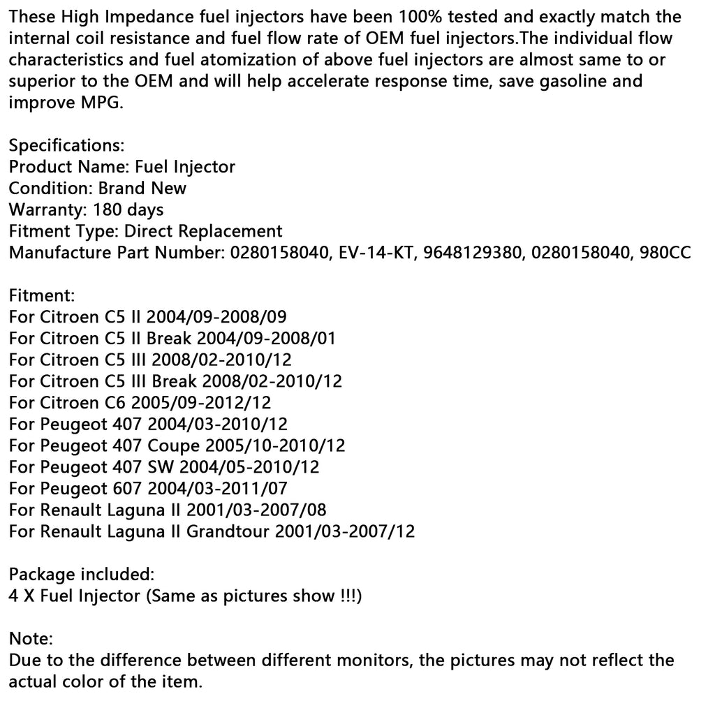 Tieto vysokoimpedančné vstrekovače paliva boli 100% testované a presne zodpovedajú vnútornému odporu cievky a prietoku paliva od výrobcu (OEM). injectors.The Individuálne prietokové charakteristiky a atomizácia paliva vyššie uvedených vstrekovačov paliva sú takmer rovnaké alebo lepšie ako u originálnych dielov (OEM) a pomáhajú zrýchliť čas odozvy, ušetriť benzín a zlepšiť spotrebu paliva.