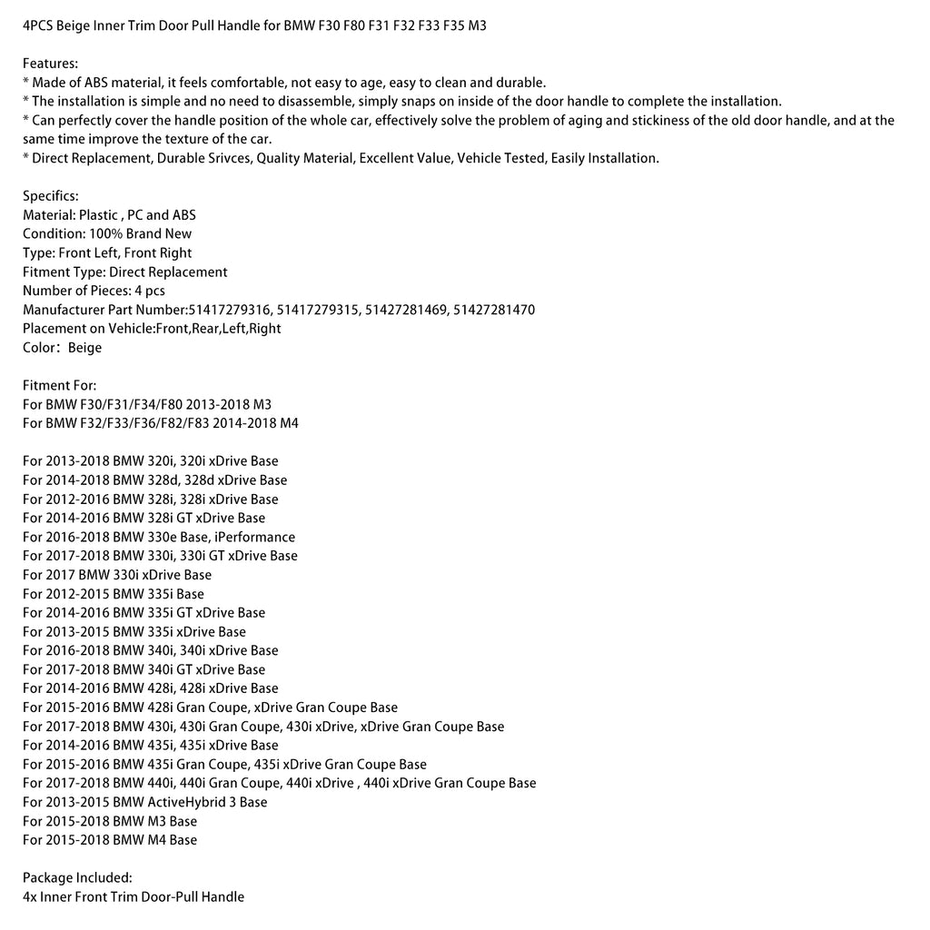 4PCS Beige Inner Trim Door Pull Handle for BMW F30 F80 F31 F32 F33 F35 M3