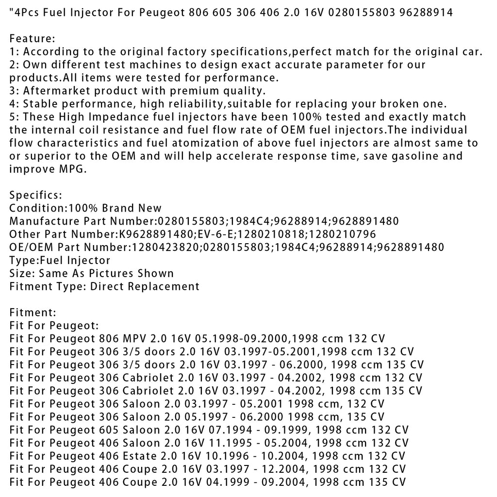 4Pcs Fuel Injector For Peugeot 806 605 306 406 2.0 16V 0280155803 96288914