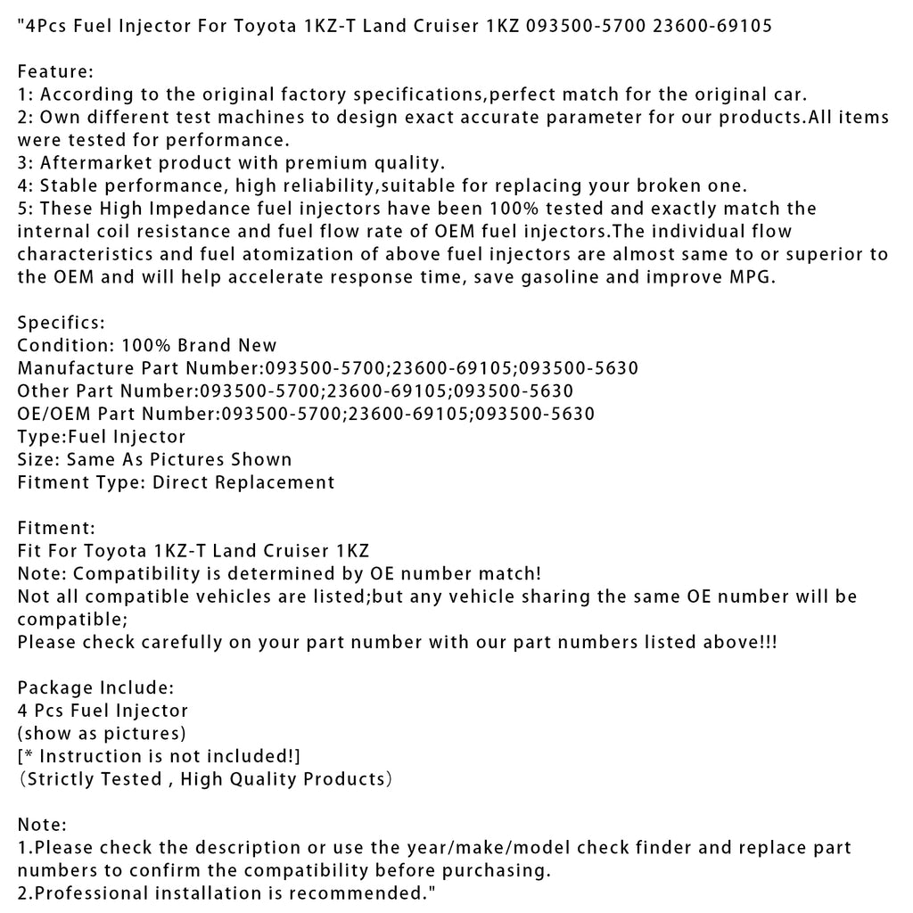 4Pcs Fuel Injector For Toyota 1KZ-T Land Cruiser 1KZ 093500-5700 23600-69105