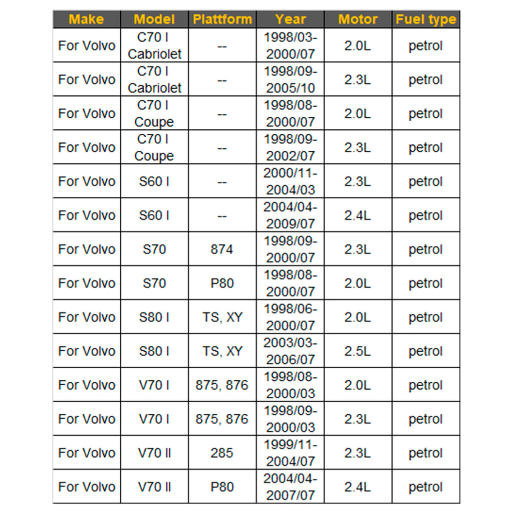 Fit For Volvo S70 P80 1998/08-2000/07 2.0L Petrol